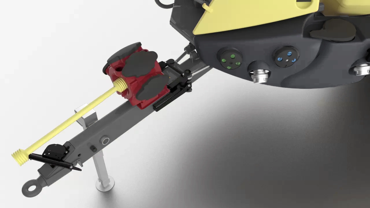 Når IntelliTrack er kalibreret, skal sprøjteføreren kun hægte to små kæder på traktoren, før han begynder at sprøjte. Sammen med beslaget danner de to kæder en trapez, som tolererer slør i trækbolten eller trækbommen.