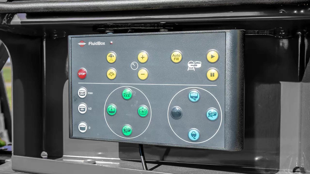 Die intelligente FluidBox bietet schnellen und direkten Zugriff auf viele Funktionen an einem Bildschirm, einschließlich AutoFill, Füllstop, AutoRühren (AutoAgitation) und AutoWash.