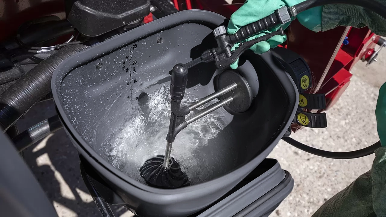 Унікальний TurboFiller, завдяки своїй зручності, великій місткості та високій швидкості наповнення, створює потужну циркуляцію рідини в бункері та швидко і безпечно змішує всі типи хімікатів. Очищення контейнерів і сам TurboFiller управляються за допомогою обертової насадки під високим тиском і окремого ручного пістолета для великих контейнерів.